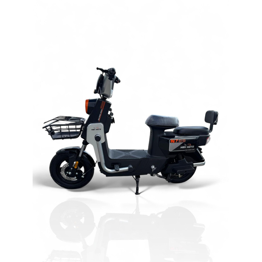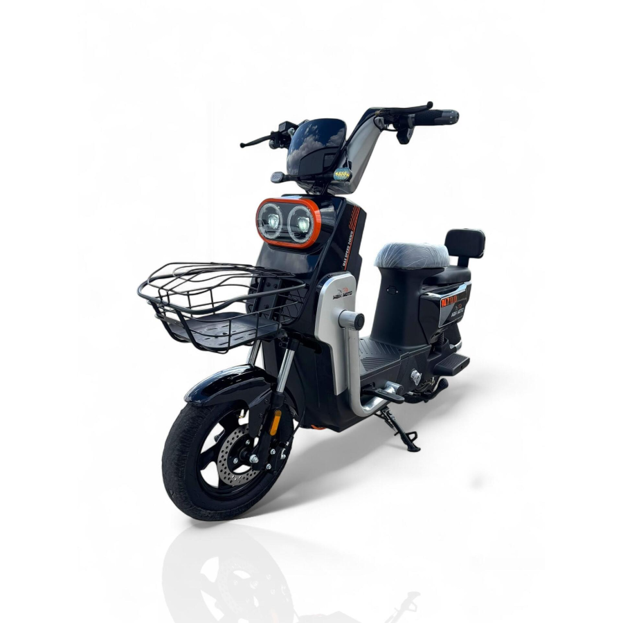 Луксозна окомплектовка: мигачи със звукова сигнализация, дигитален LCD дисплей с 5 параметъра, сгъваеми степенки, облегалка на задната седалка, три скорости, предна и задна спирачка, големи балонни гуми, стоп, багажно джобче на рамката, супер олекотен, верига и педали, предни и задни амортисьори, мощен цветен LED преден фар, удобни кожени предна и задна седалка с облегалка, клаксона, зарядно специално за батерията.